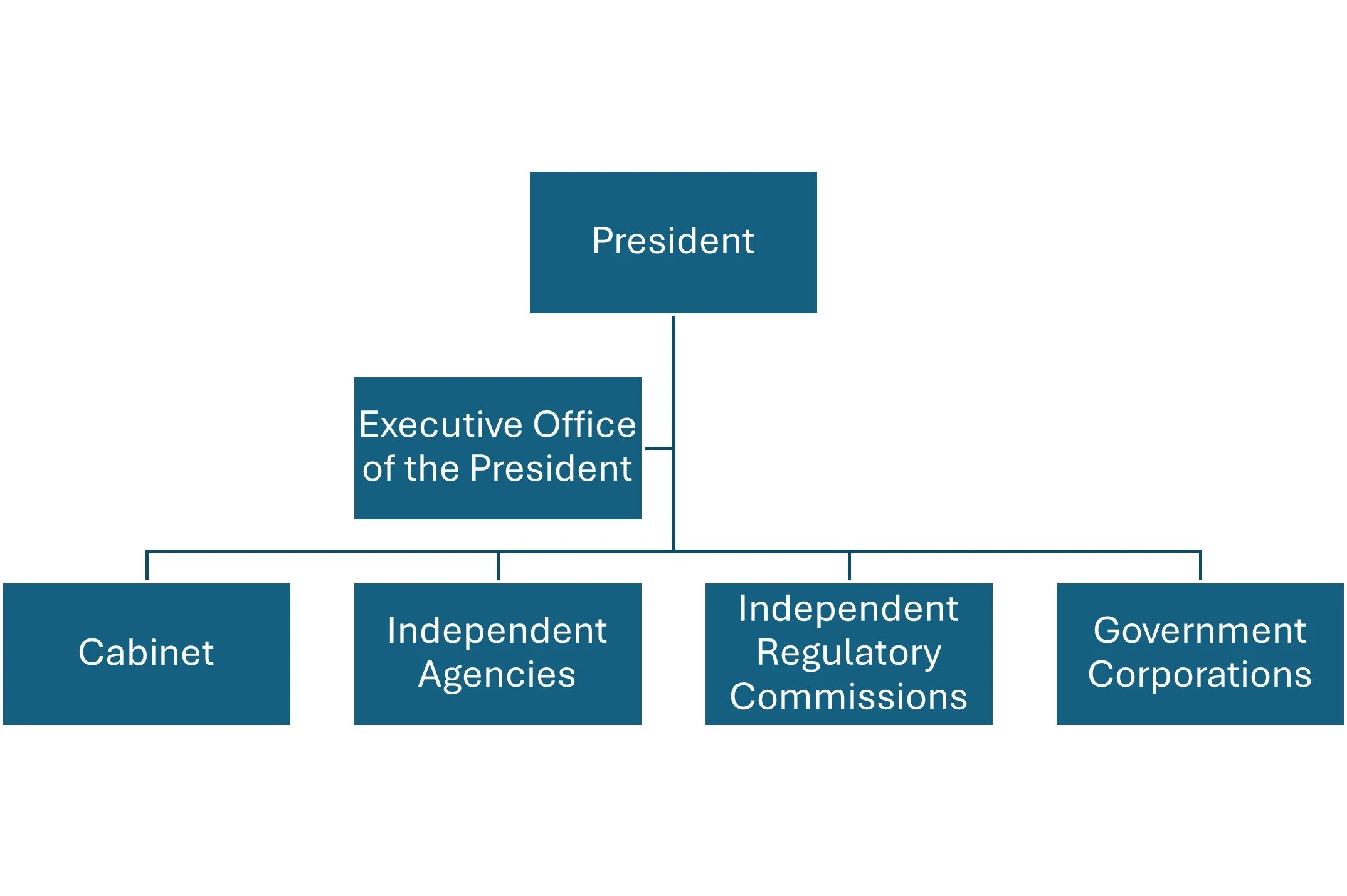 Article II of the U.S. Constitution establishes the Executive Branch of the federal government. In Section 1, Clause 1, the federal executive power is vested in the President. As the Chief Executive Officer of the United States, presidents are at the pinnacle of the executive branch and the executive policymaking process.